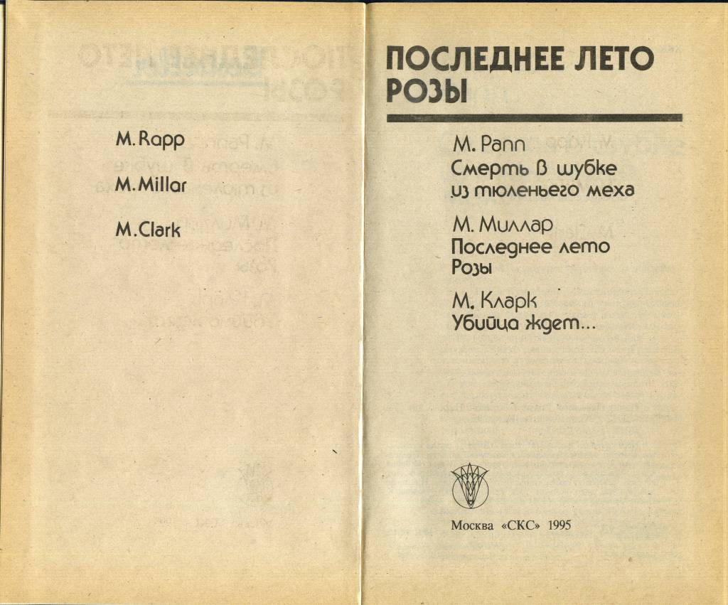 | Описание 1 | Неразделенная любовь (М. Рапп "Смерть в шубке из тюленьего меха"), жизнь, клонящаяся к закату (М. Миллар "Последнее лето Розы"), и извращенная страсть (М. Кларк "Убийца ждет...") заставляют персонажей романов, включенных в этот сборник, совершать самые чудовищные преступления. И главное действующее лицо во всех трех произведениях - женщина. Она - причина зла, но она же и всепобеждающее добро |