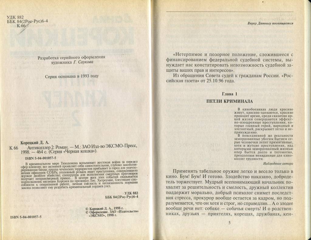| Описание 1 | В криминальном мире Тиходонска вспыхивает жестокая война за передел сфер влияния; все активнее проявляет себя самостоятельная, глубоко законспирированная банда; группа чеченских террористов прибывает в город для уничтожения офицеров СОБРа; уголовный розыск ищет преступника, совершившего дерзкое двойное убийство; спецгруппа для исполнения смертных приговоров получает неправомерный приказ...В центре всех этих событий оказывается подполковник милиции Коренев по прозвищу Лис. Хитроумие, блестящие способности к оперативной работе, личная смелость и несвязанность нормами закона позволяют ему разрубить криминальный гордиев узел |
