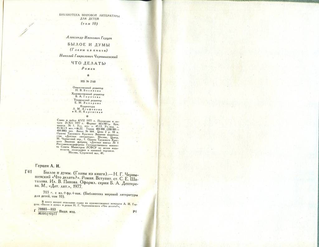 В книгу входят отдельные главы из художественных мемуаров А. И. Герцена "Былое и думы" и роман Н. Г. Чернышевского "Что делать?"