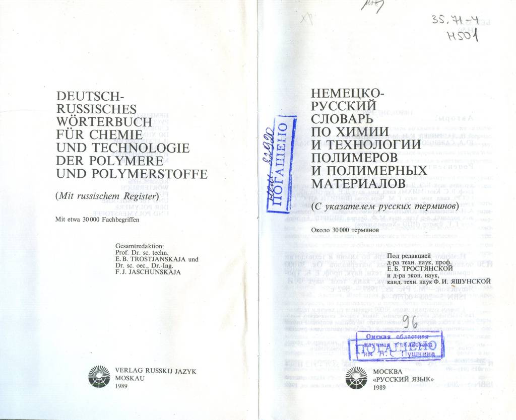 Главная » Книги » Справочная литература » Немецко-русский словарь по химии и технологии полимеров и полимерных материалов. Около 30 000 терминов