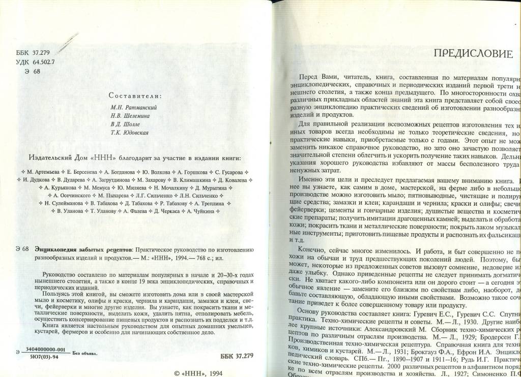 | Описание 1 | Пользуясь этой книгой, вы сможете изготовить дома или в своей мастерской мыло и косметику, олифы и краски, чернила и карандаши, замазки и клеи, свечи, фейерверки и многие другие изделия. Вы узнаете как покрасить ткани и металлические поверхности, выделать кожи, удалить пятна, отполировать мебель, осуществить консервирование продуктов и распознать их подделки |